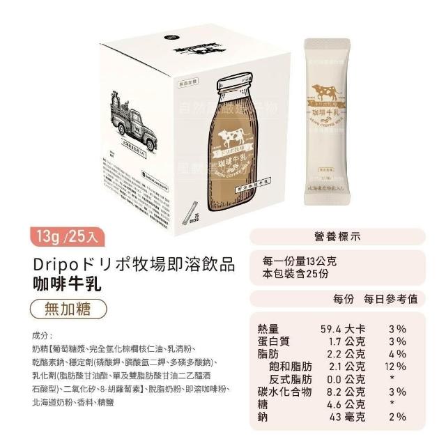 Dripo牧場系列香濃牛乳飲即溶沖泡 咖啡牛乳(原味)/咖啡牛乳(無糖)/紅茶牛乳/抹茶牛乳 (單盒;口味任選)
