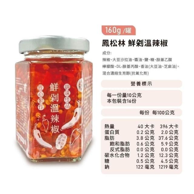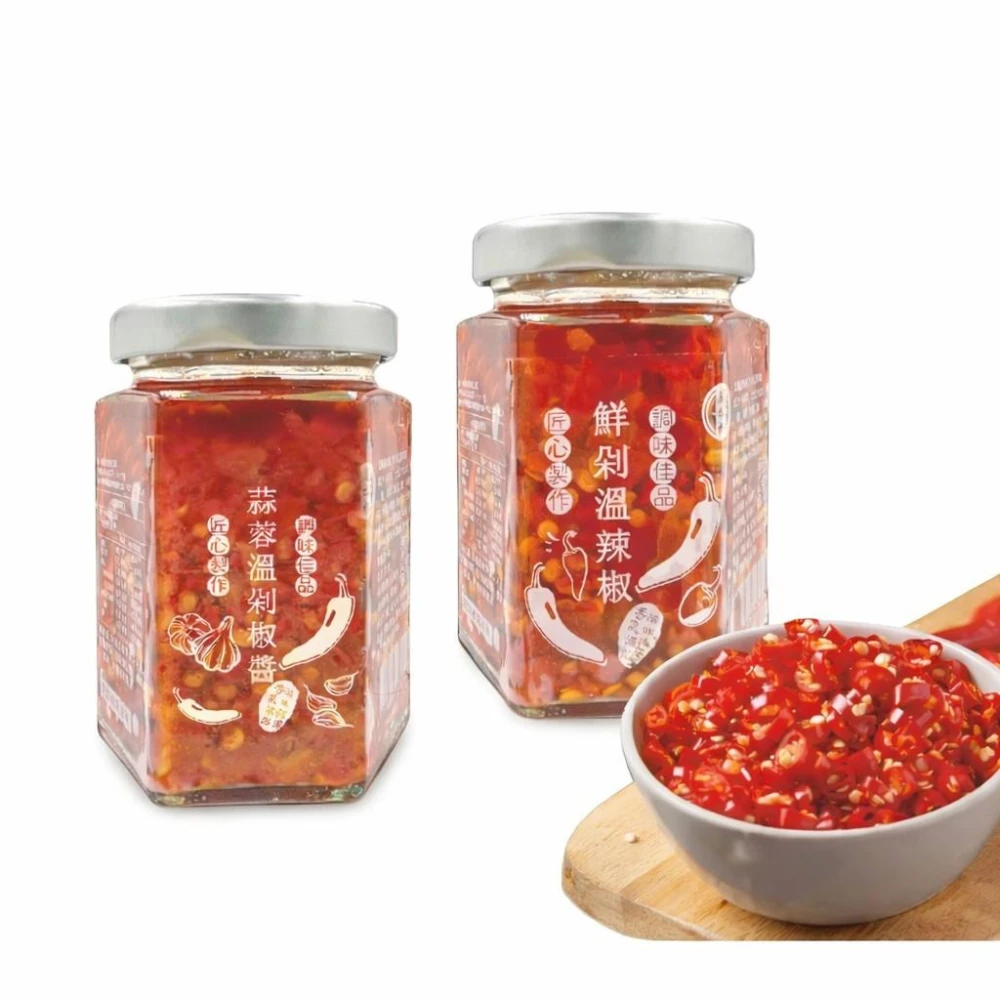 鳳松林 台灣老字號手炒醬料 蒜蓉溫剁椒醬180g/鮮剁溫辣椒醬160g