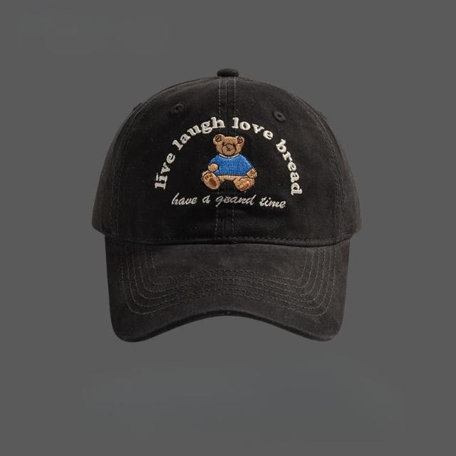 Twinko小熊刺繡純棉老帽/10色/純棉軟頂老帽/深檐小臉神器-HT007(老帽/棒球帽/帽子/鴨舌帽)