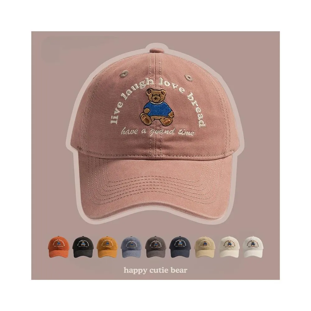 Twinko小熊刺繡純棉老帽/10色/純棉軟頂老帽/深檐小臉神器-HT007(老帽/棒球帽/帽子/鴨舌帽)