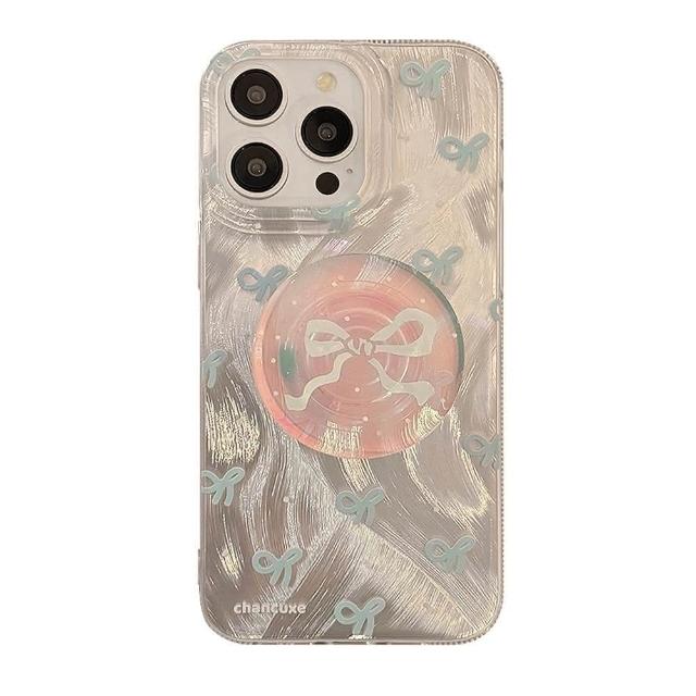 Twinko滿版藍色小蝴蝶結+鐳射藍支架 夢幻羽紗手機殼2件組/iPhone15 14 13PRO MAX-CA1774(手機殼/保護殼)