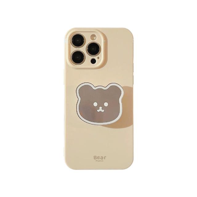 Twinko超可愛奶油色系手機殼+熊熊鏡子支架2件組/iPhone15 14 13 12 ProMax-CA1684(手機殼/保護殼)
