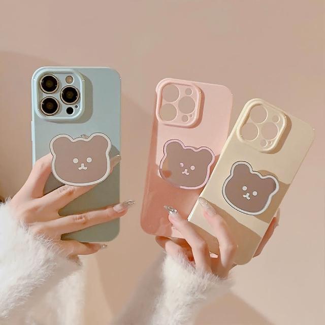 Twinko超可愛奶油色系手機殼+熊熊鏡子支架2件組/iPhone15 14 13 12 ProMax-CA1684(手機殼/保護殼)