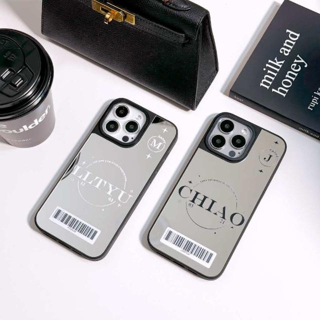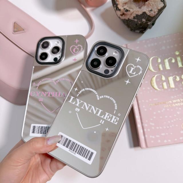 Twinko獨家原創-愛心/圓圈高質感設計霧面銀黑邊鏡面殼/客製化姓名載具條碼/IPHONE16 15 14-CA1759(客製化/手機殼/鏡面殼)