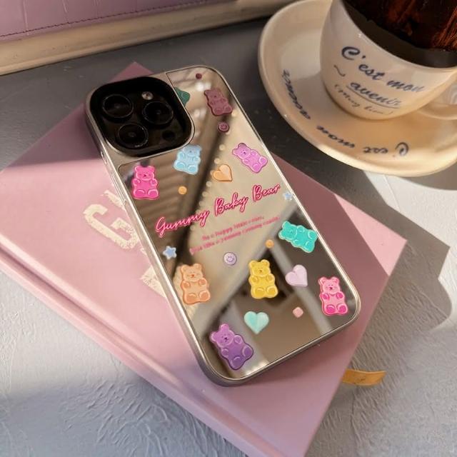 TwinkoGummy Bear*可愛滿版小熊軟糖-不客製一般款*高質感霧面銀邊鏡面殼/I16 15 14-CA1841(手機殼/鏡面殼/小熊軟糖/保護殼)