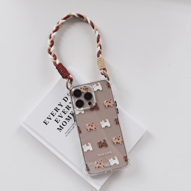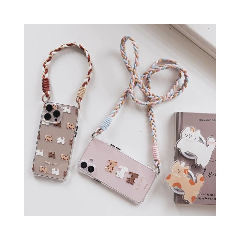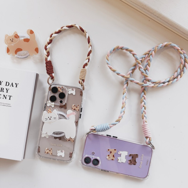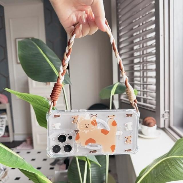 Twinko獨家設計 奶油萌貓咪四角開孔透明掛繩殼/iPhone16 15 14-CA1811(掛繩殼/四角開孔殼/奶油萌貓咪/手機殼/保護殼)