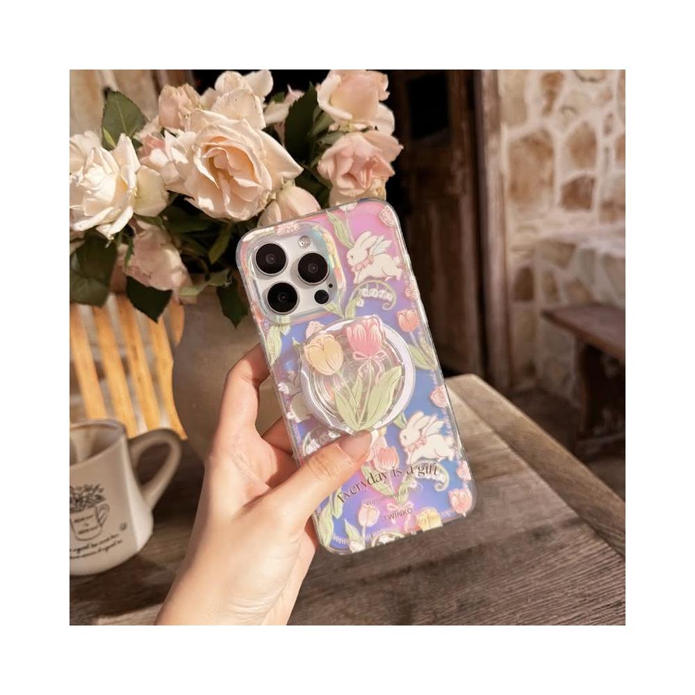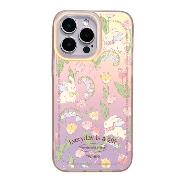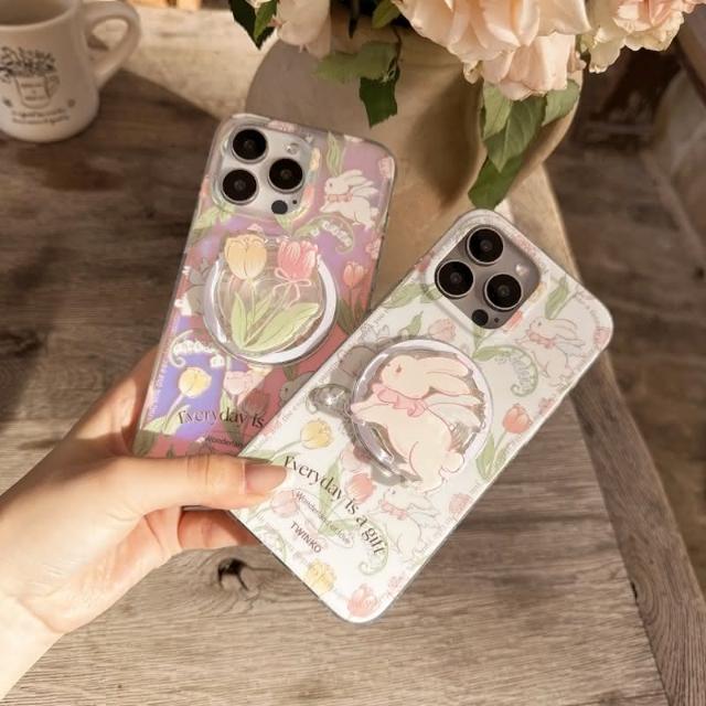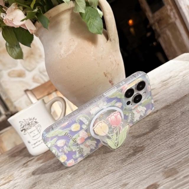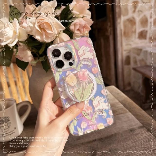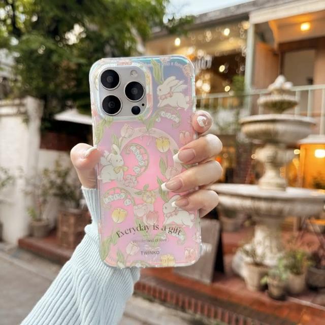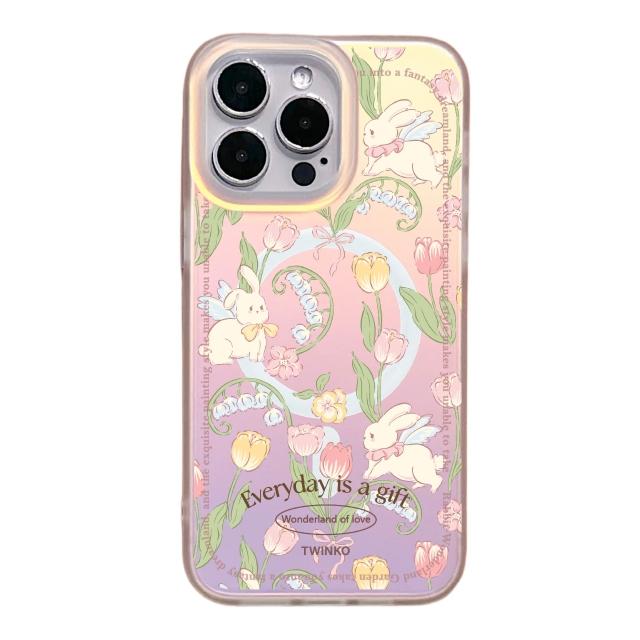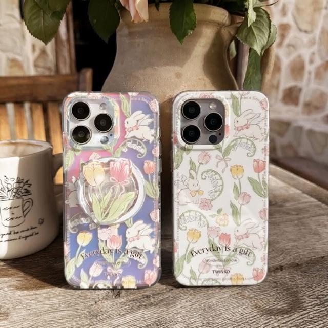 Twinko獨家設計 法式花園鬱金香兔兔*不客製化款-霧面幻彩殼/IMD磁吸殼/IPHONE16 15 14防摔-CA1857(手機殼/鬱金香兔兔/保護殼/磁吸殼)