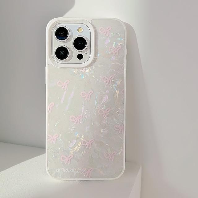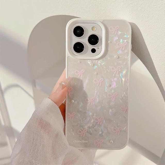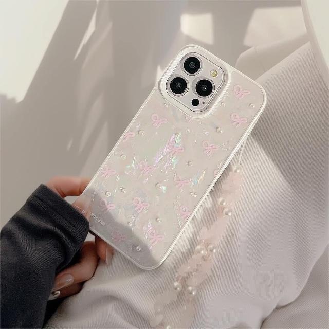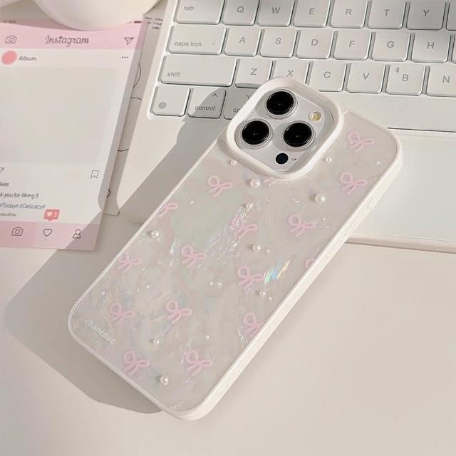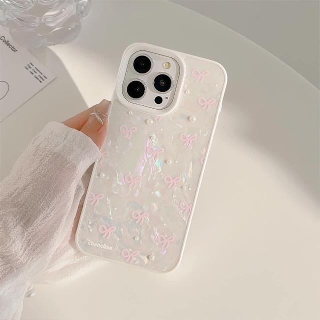 Twinko粉色蝴蝶結珍珠貝殼/氣質貝殼紋手機殼*單殼/iPhone16 15 14 13PRO MAX-CA1871(手機殼/貝殼紋/蝴蝶結/保護殼)