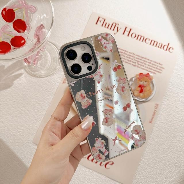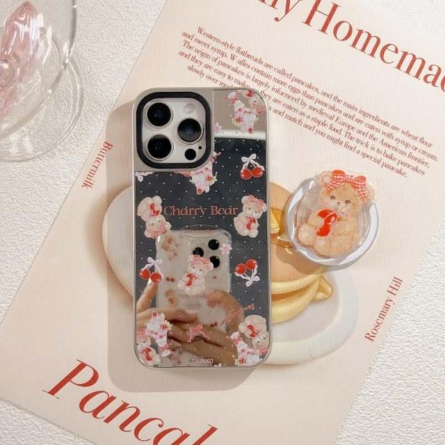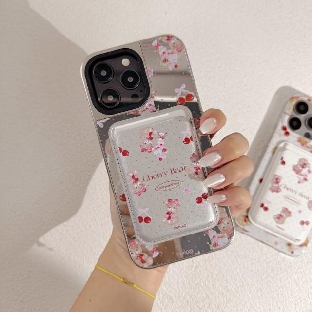 Twinko甜美櫻桃Jennie小熊不客製賣場/高質感霧面銀邊鏡面殼/磁吸殼/IPHONE16 15 14PRO-CA1914(手機殼/保護殼/防摔殼)