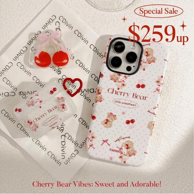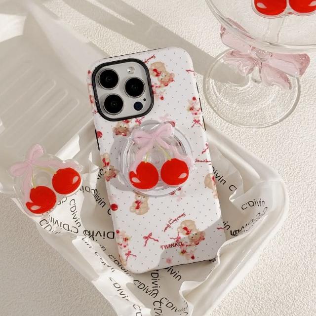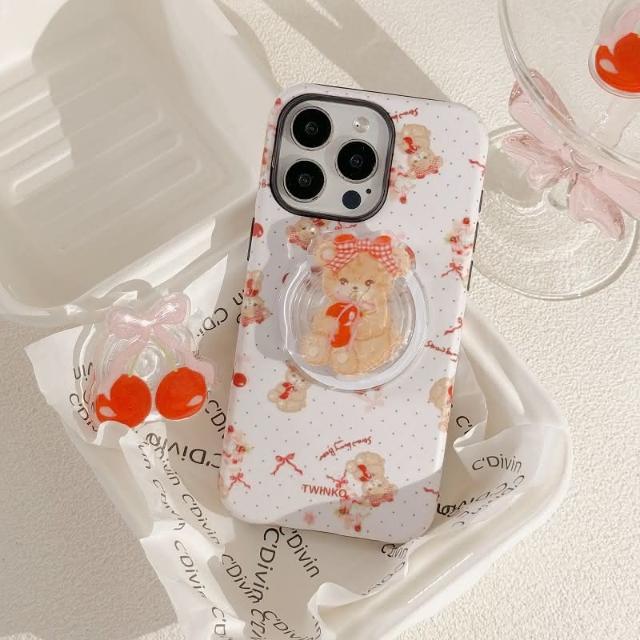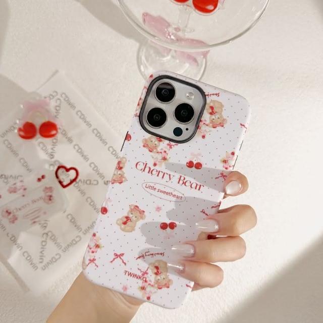 Twinko甜美櫻桃Jennie小熊客製賣場/二合一菲林殼防摔殼/磁吸殼/蘋果IPHONE16 15PRO-CA1915(手機殼/保護殼/防摔殼)