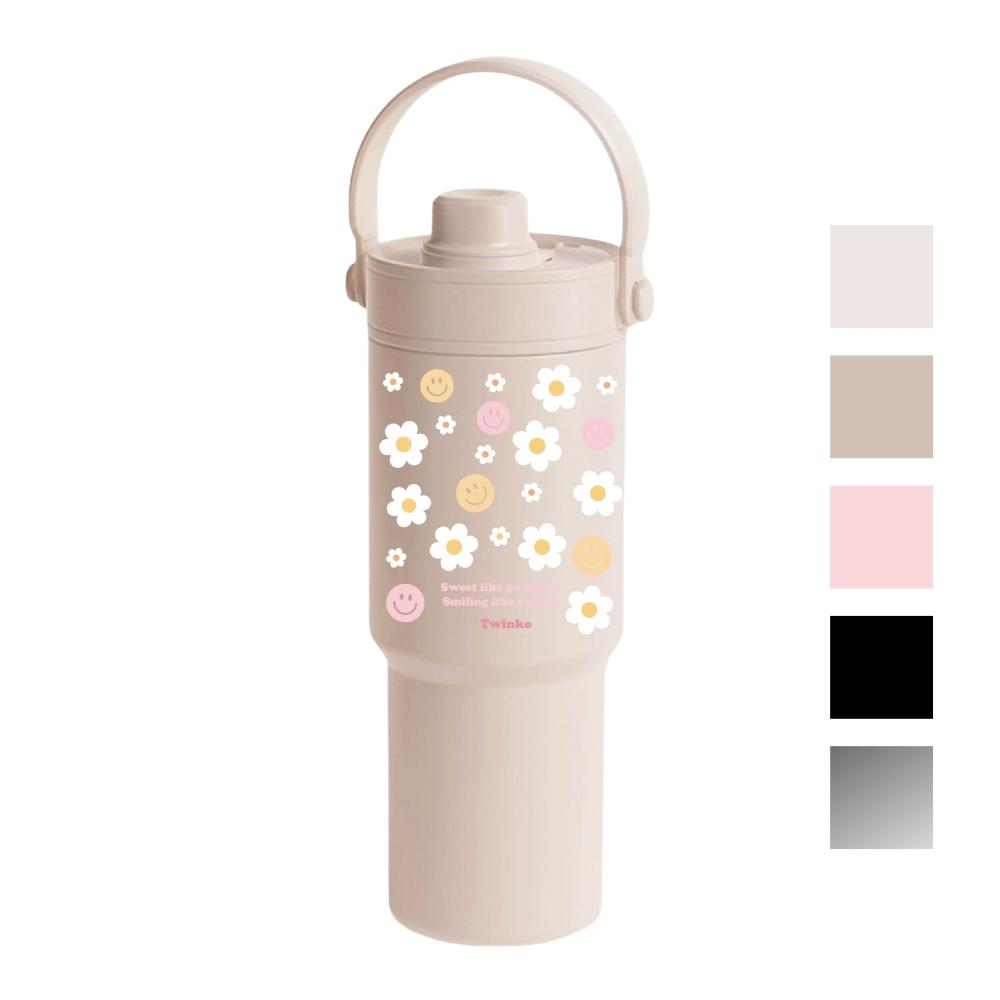 TwinkoSGS檢驗-笑臉雛菊x小熊軟糖系列*質感陶瓷保溫杯735ml/保溫瓶/隨行杯/環保杯/水壺-HM238(笑臉花花)
