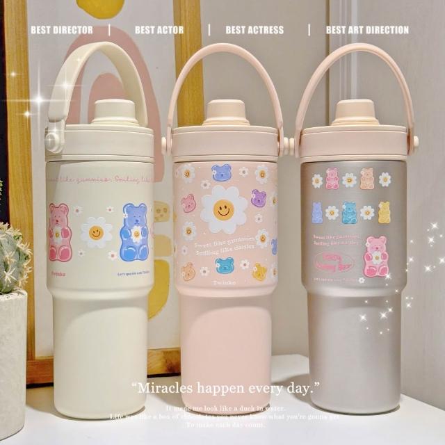 TwinkoSGS檢驗-笑臉雛菊x小熊軟糖系列*質感陶瓷保溫杯735ml/保溫瓶/隨行杯/環保杯/水壺-HM238(笑臉花花)