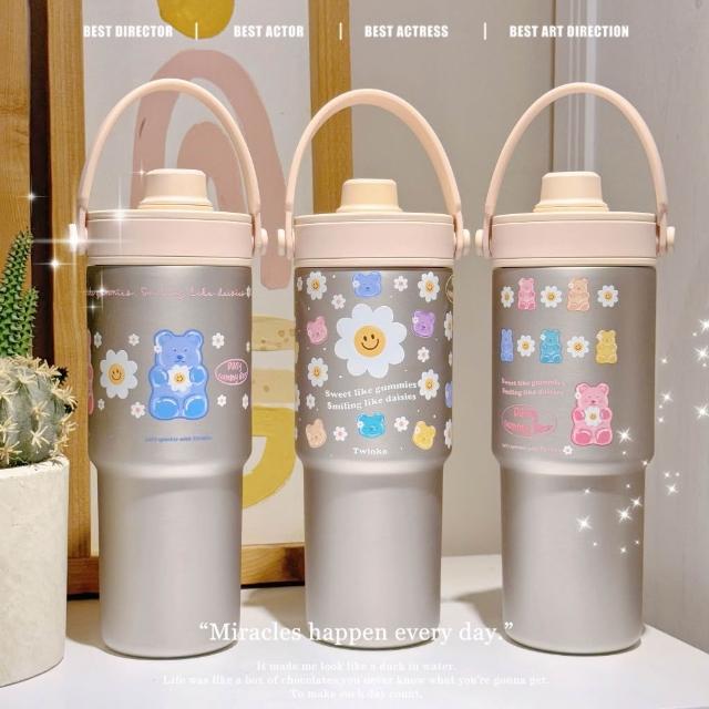 TwinkoSGS檢驗-笑臉雛菊x小熊軟糖系列*質感陶瓷保溫杯735ml/保溫瓶/隨行杯/環保杯/水壺-HM238(笑臉花花)