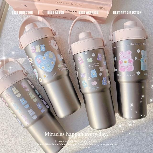 TwinkoSGS檢驗-Baby糖粉小熊系列*質感陶瓷保溫杯735ml/保溫瓶/隨行杯/環保杯/水壺-HM239(糖粉大小熊)