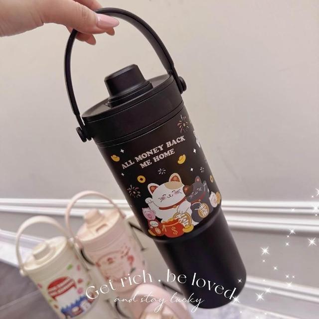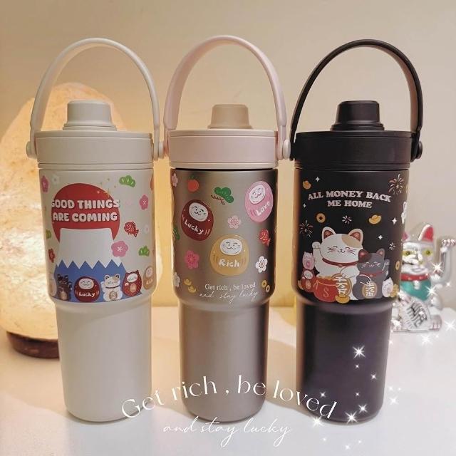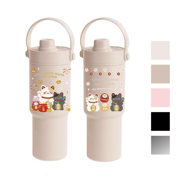 TwinkoSGS驗證-招財好運系列陶瓷保溫杯735ml/環保杯/隨行杯/過年禮盒-HM244(招財貓與好夥伴)