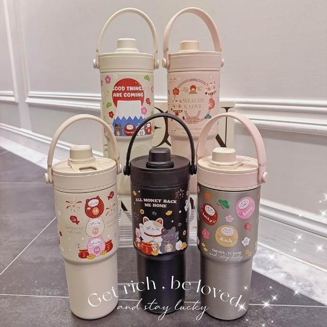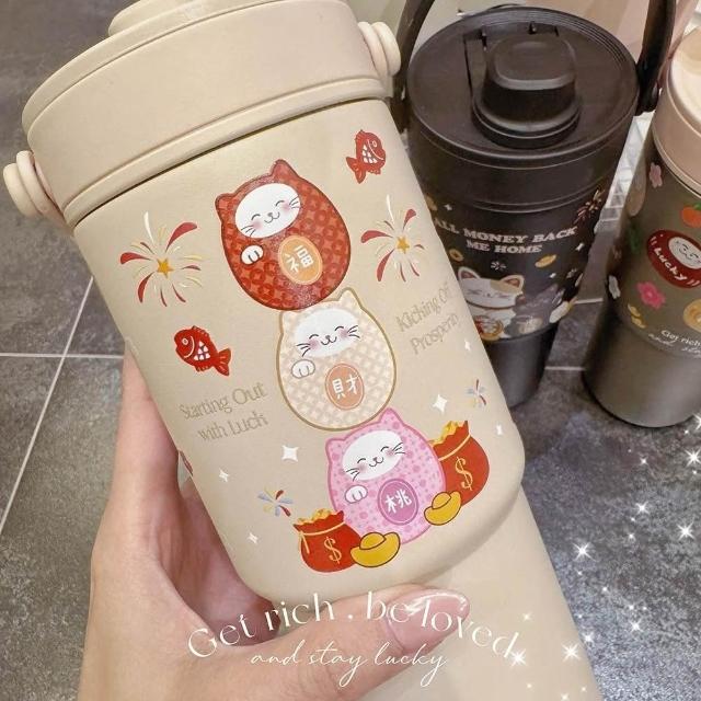 TwinkoSGS驗證-招財好運系列陶瓷保溫杯735ml/環保杯/隨行杯/過年禮盒-HM244(招財貓與好夥伴)