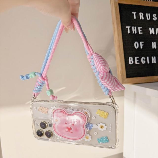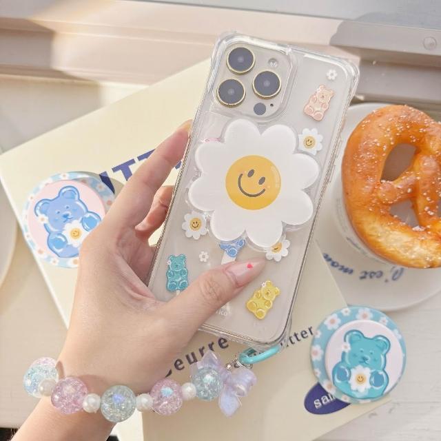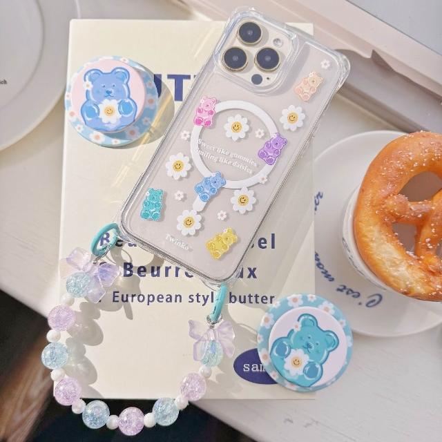 Twinko笑臉花花+全身小熊軟糖/四角掛孔掛繩殼/MagSafe磁吸殼-CA2107