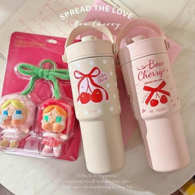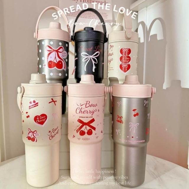 Twinko🍒法式復古🍰櫻桃蝴蝶結系列*質感陶瓷保溫杯735ml/環保杯/隨行杯-HM255(雙色款&Sweet Love)