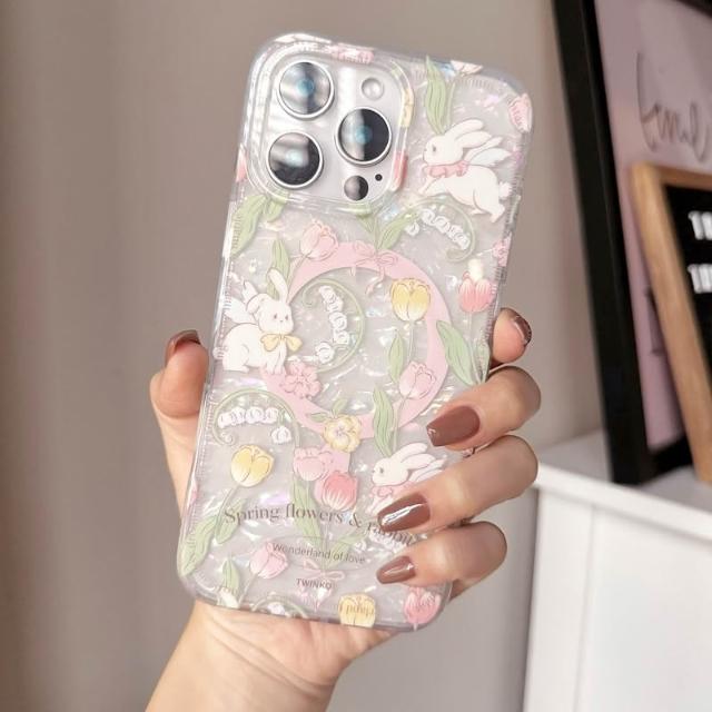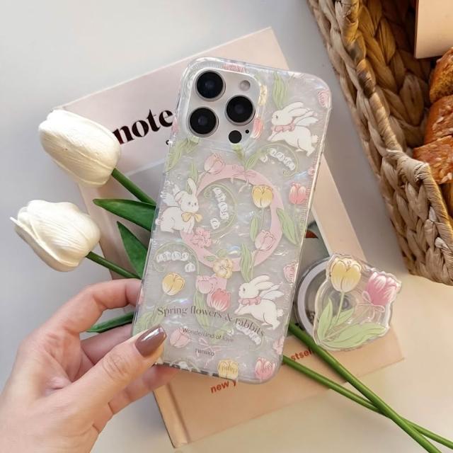 Twinko法式花園鬱金香兔兔.貝殼殼/IMD內印刷/貝殼磁吸殼-CA1860