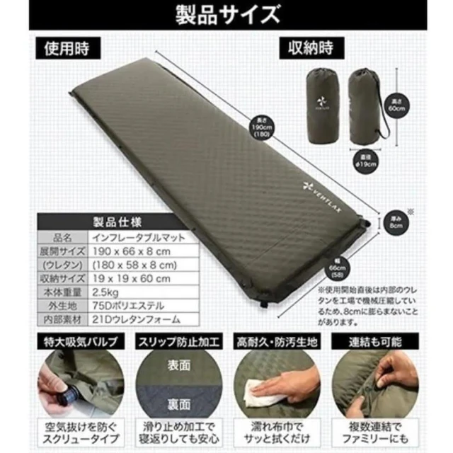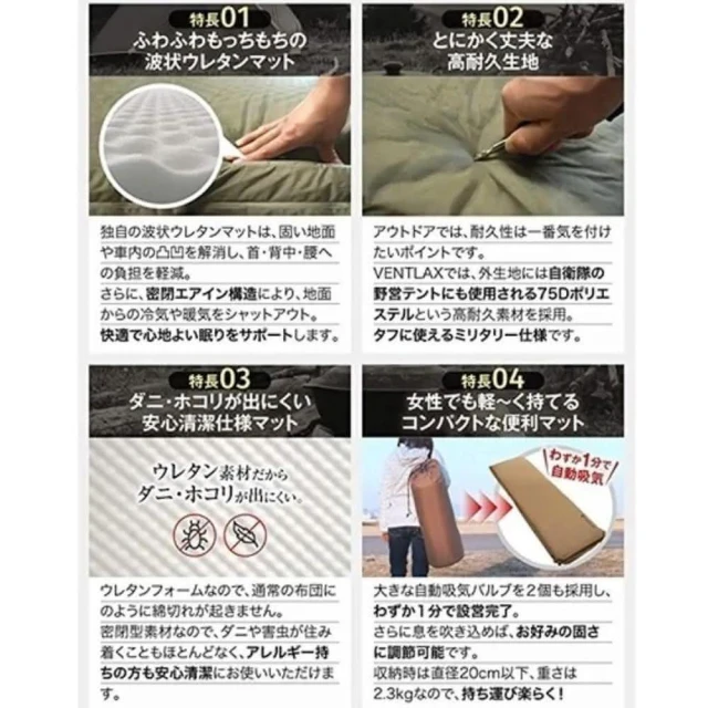 VENTLAX8cm自動充氣床墊 行軍床墊(軍綠色/沙色/黑色)