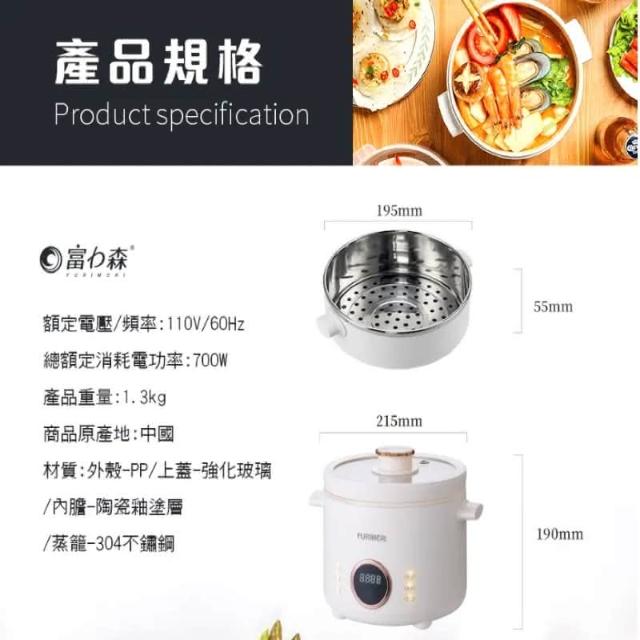 FURIMORI 富力森2L微電腦萬用鍋FU-EH280電火鍋(煮飯/慢燉/蒸煮/火鍋)