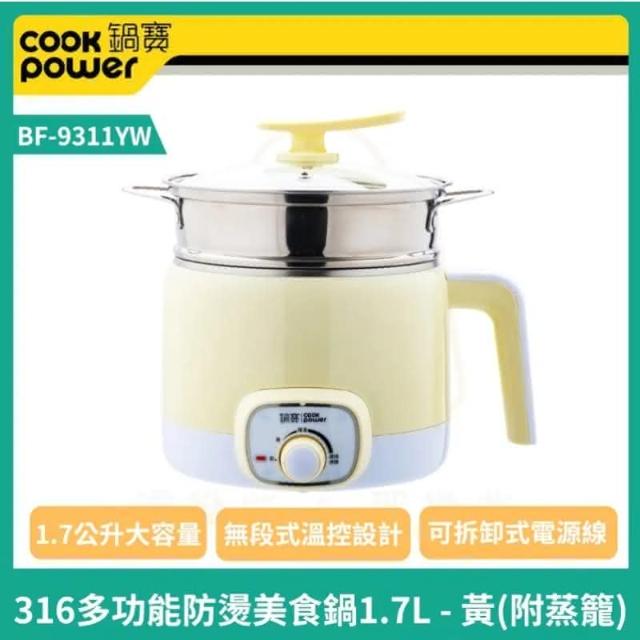 CookPower 鍋寶316多功能防燙美食鍋1.7L_附蒸籠 美食鍋 電鍋(黃色BF-9311YW)