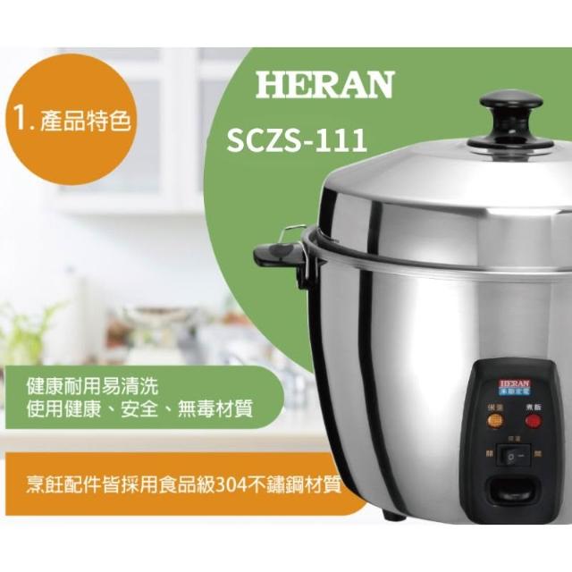 HERAN 禾聯304不鏽鋼電鍋 11人份電鍋 養生電鍋_SCZS-111