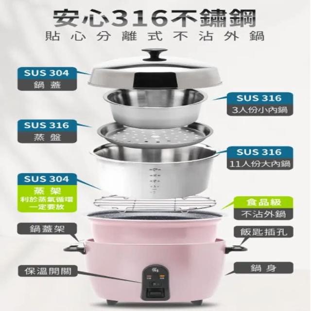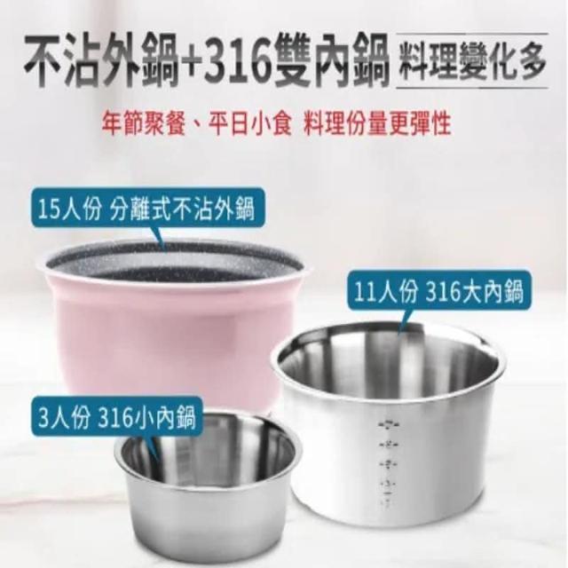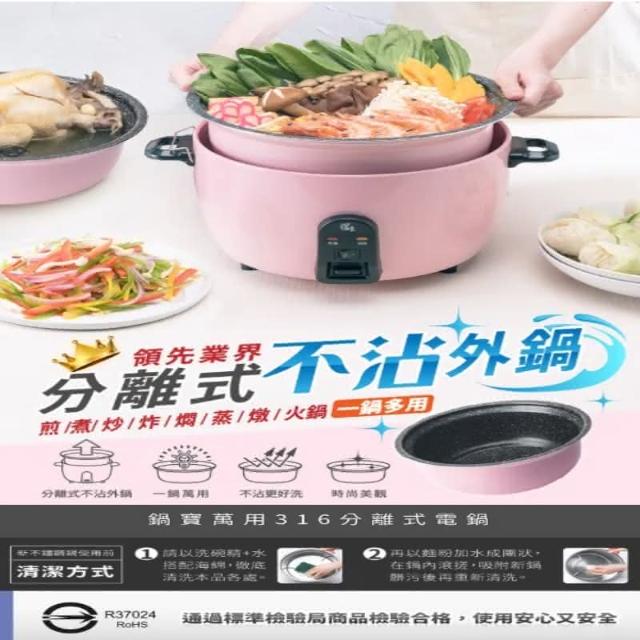 CookPower 鍋寶萬用316分離式電鍋-11人份_茶花粉(電鍋 煎煮炒炸燜蒸燉火鍋)
