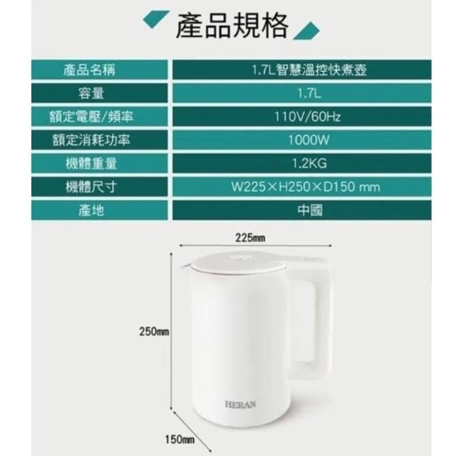 HERAN 禾聯1.7L智慧溫控 雙層防燙快煮壺 HEK-17GL010