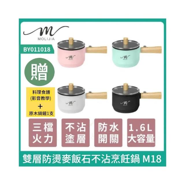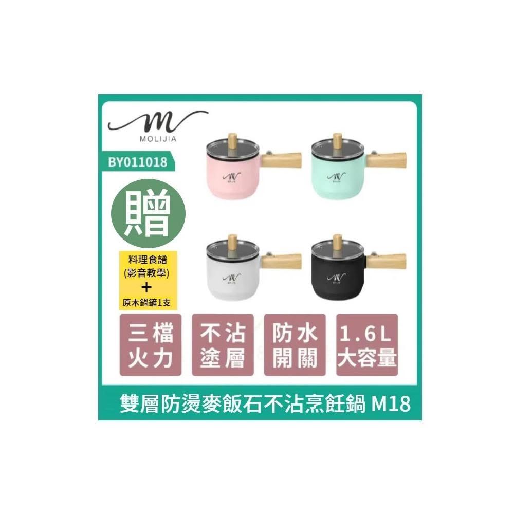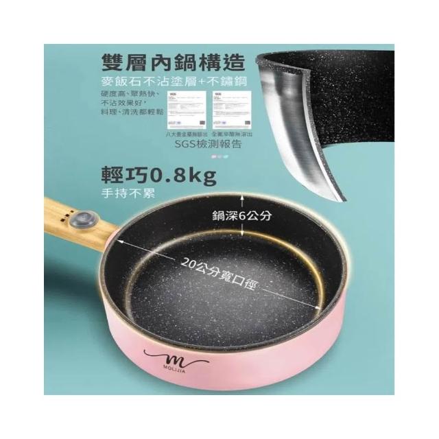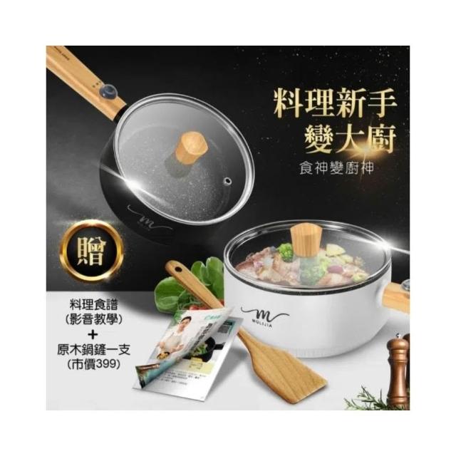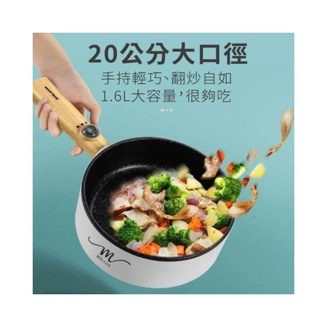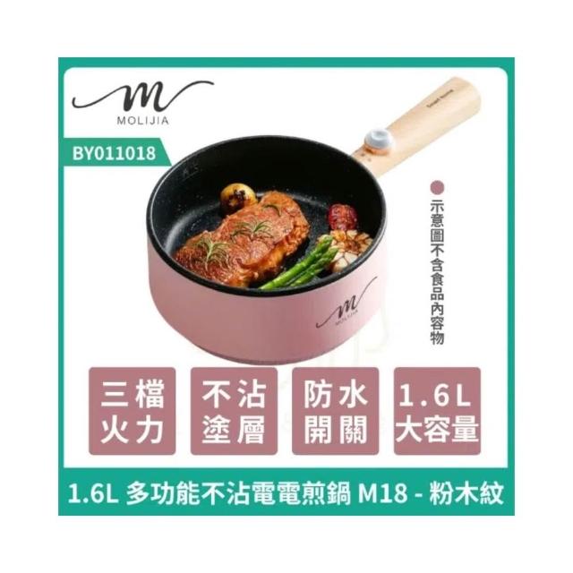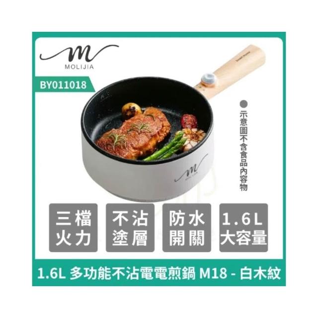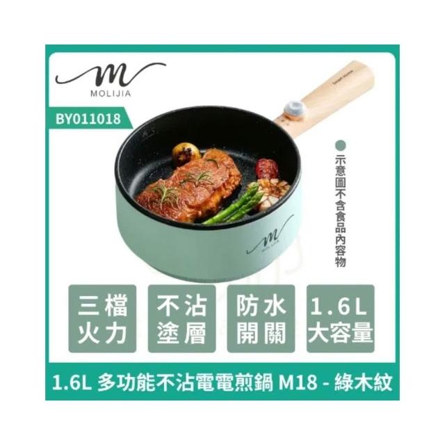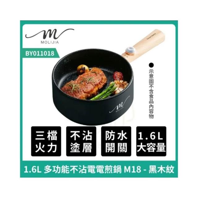 MOLIJIA 魔力家M18麥飯石不沾電煎烹飪鍋 1.6L電火鍋-木紋款(BY011018)