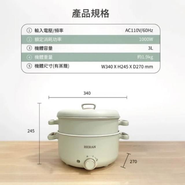 HERAN 禾聯3L多功能美食鍋/陶瓷/電火鍋( HHP-10SP01S)