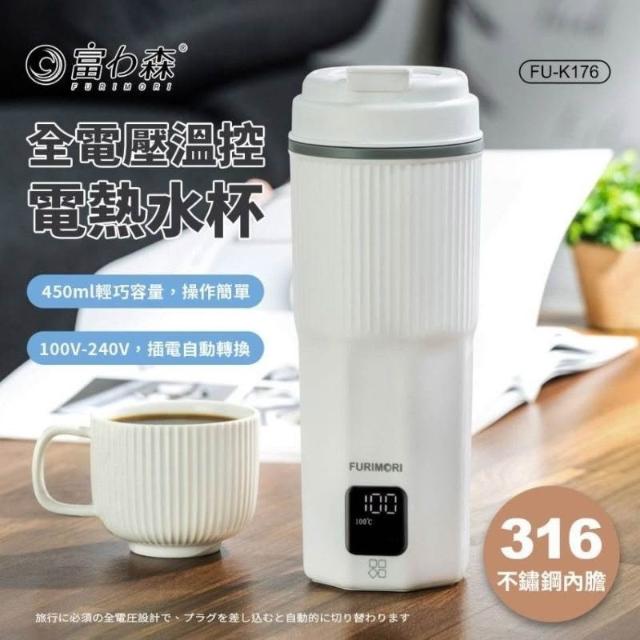 FURIMORI 富力森316全電壓智慧溫控電熱水杯 450ml快煮壺 快煮杯 保溫杯 出國必備_FU- K176