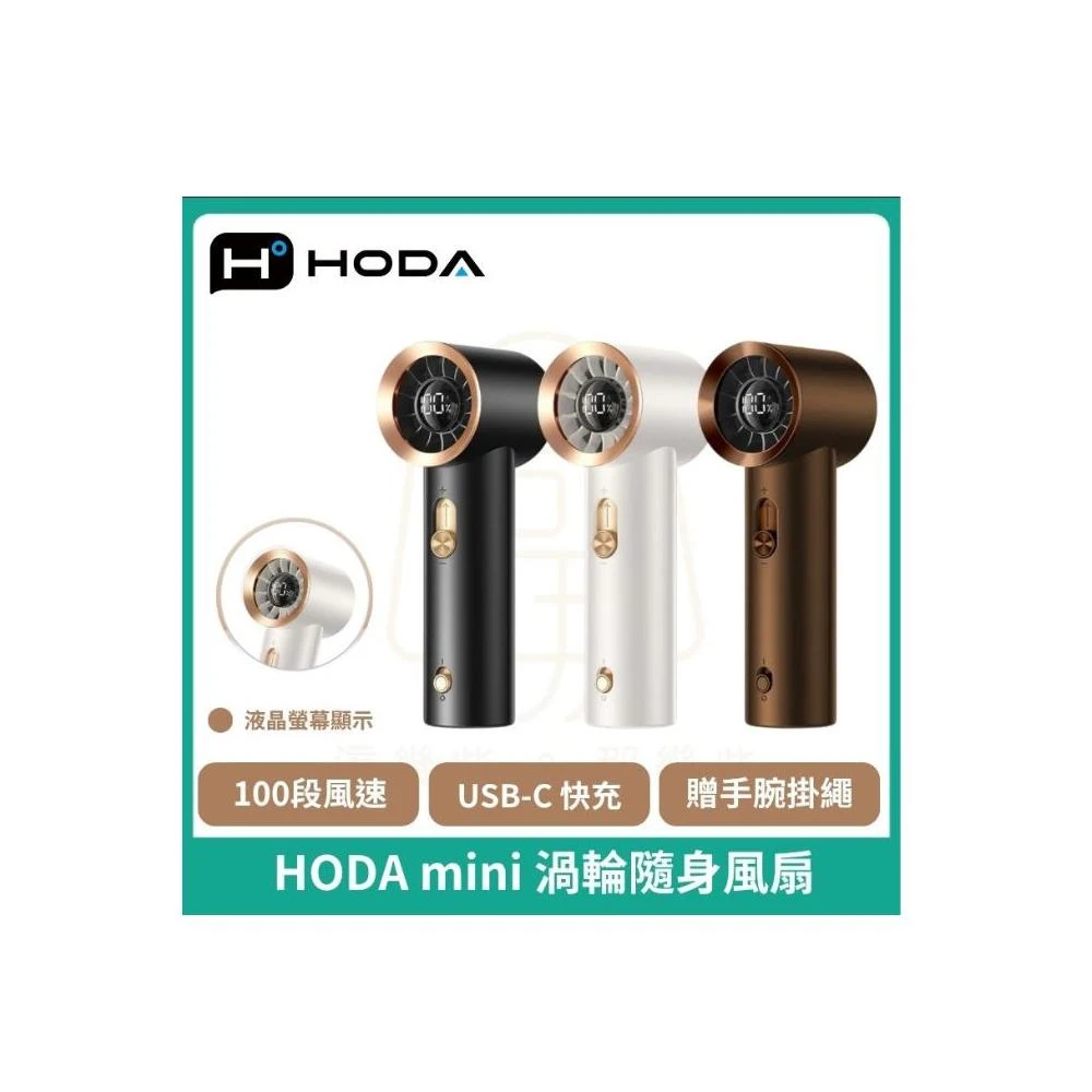 hoda100段mini渦輪風扇 無線風扇 隨身 迷你小扇 手持風扇 9m/s強風液晶顯示 Type-C快充 贈掛繩