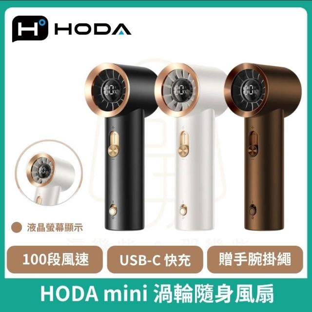 hoda100段mini渦輪風扇 無線風扇 隨身 迷你小扇 手持風扇 9m/s強風液晶顯示 Type-C快充 贈掛繩