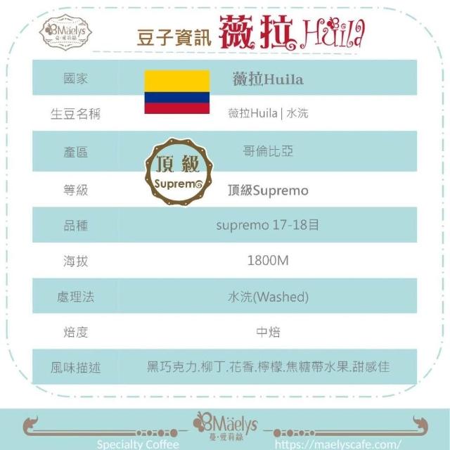 Maelys《薇拉》哥倫比亞 Huila頂級Supremo水洗 中焙 單品咖啡豆-半磅(227g)