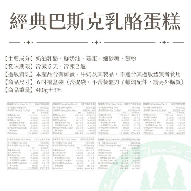 圓森甜點 焦香巴斯克乳酪蛋糕6吋禮盒x1盒|生日蛋糕|下午茶|點心|附提袋(生日蛋糕|乳酪蛋糕|巴斯克)
