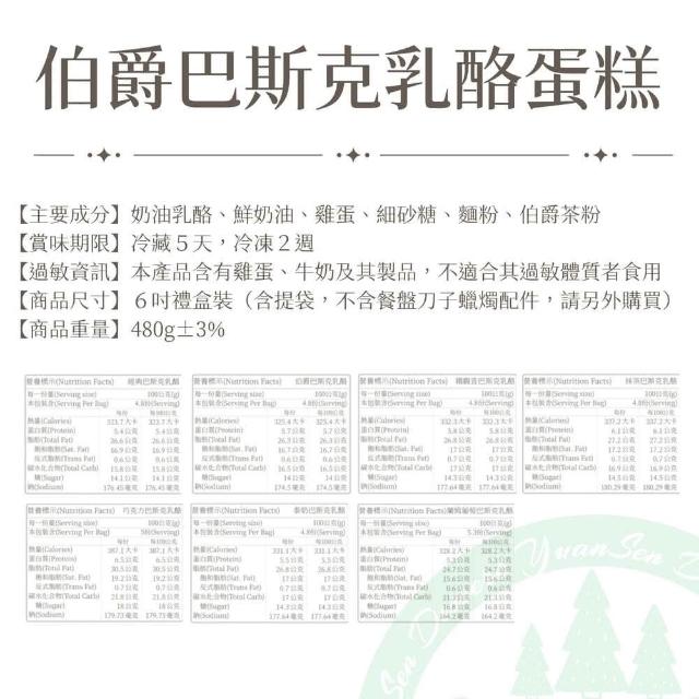 圓森甜點 伯爵巴斯克乳酪蛋糕6吋禮盒x1盒|生日蛋糕|下午茶|點心|附提袋(乳酪蛋糕|下午茶)|伯爵紅茶|伯爵茶