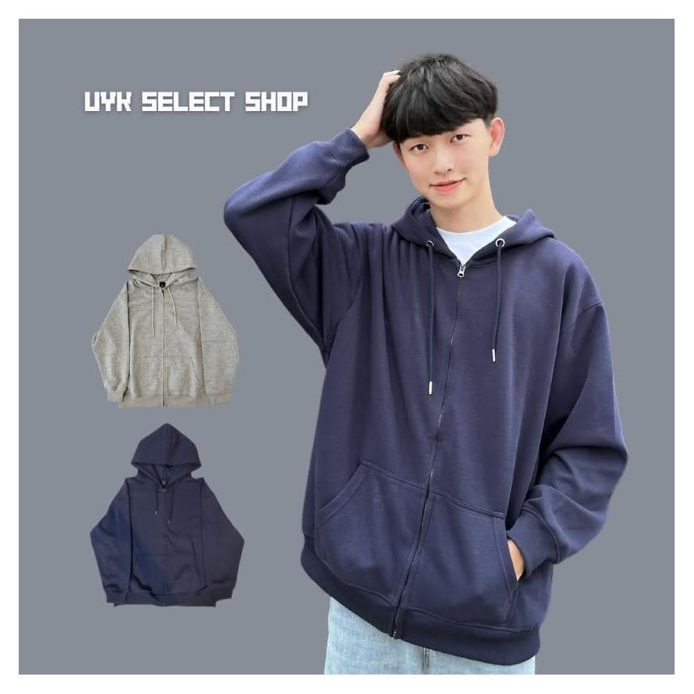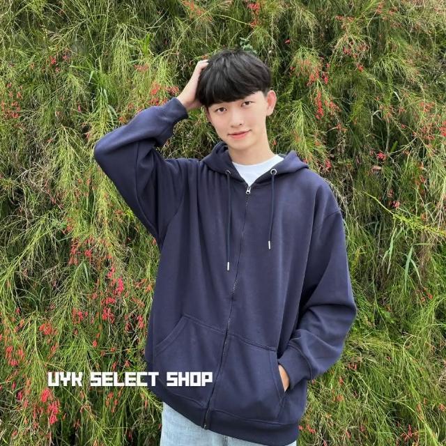 UYK 深藍/灰重磅連帽外套(素色 重磅 休閒外套 外套 連帽外套 藏藍 灰色)