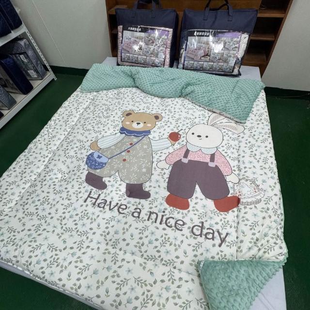 愛屋及烏居家生活館針織棉 印花 豆豆 厚被毯 雲朵被 豆豆被 毛毯+被子 二合一 冬天鋪棉款 150*200公分 現貨