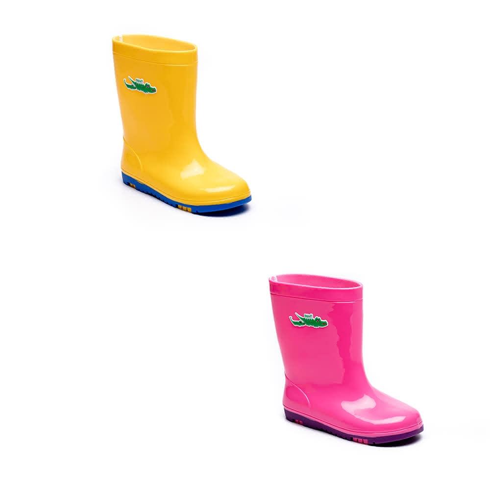 母子鱷魚繽紛Q彈兒童晴雨防水靴-黃/粉紅-童鞋-絕版品特賣 售完不補