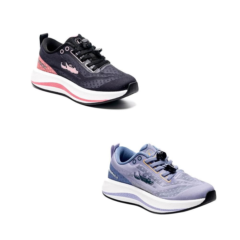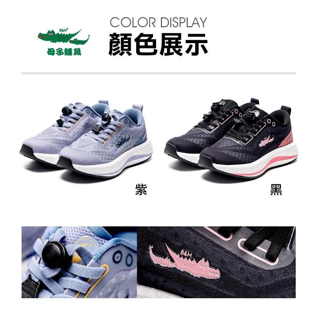 母子鱷魚彈力按摩運動鞋-黑/紫-女鞋