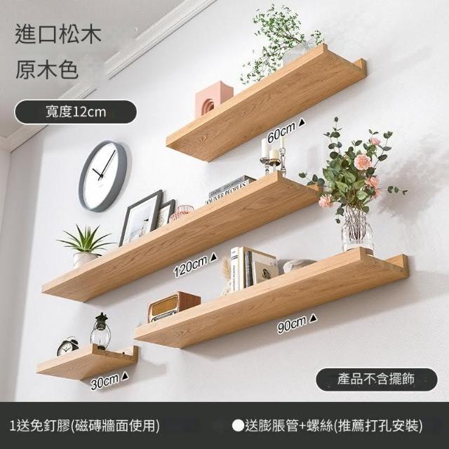 MatsuTa 松太實木置物架 一字隔板置物架 壁掛無痕置物架 墻上置物架 免打孔實木隔板 置物架 電視背景牆壁掛 臥室牆壁板子