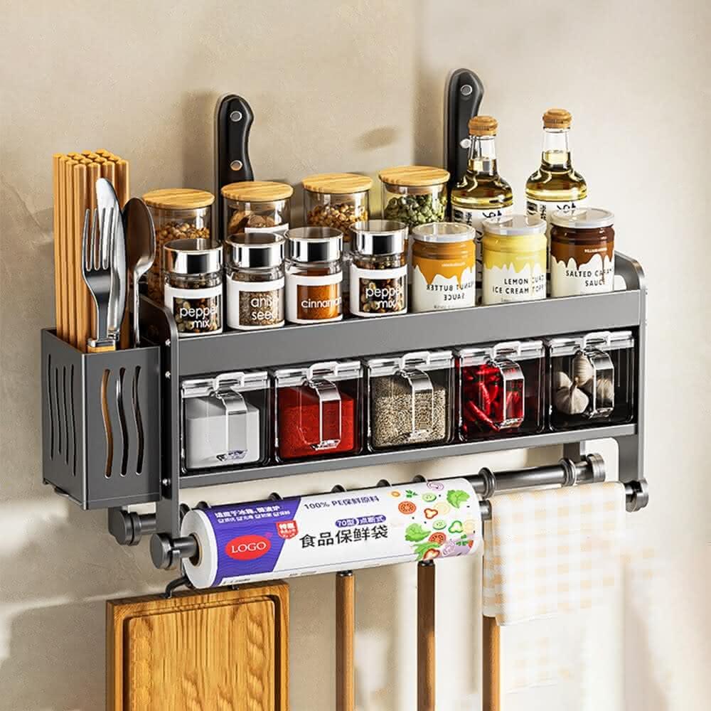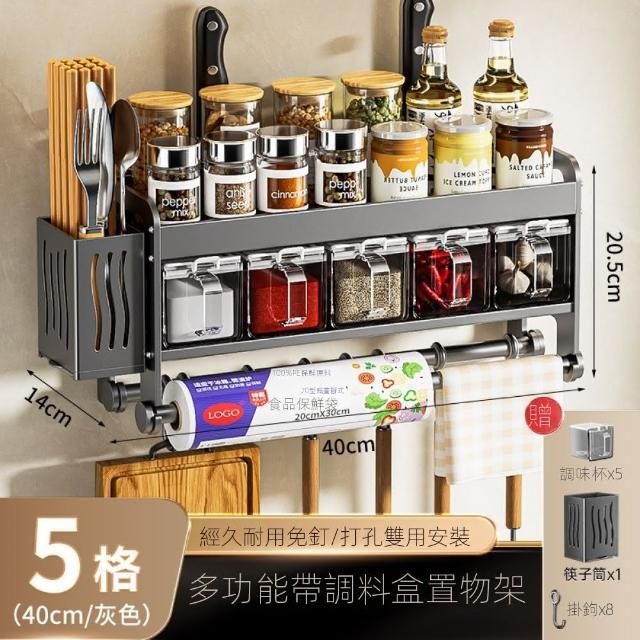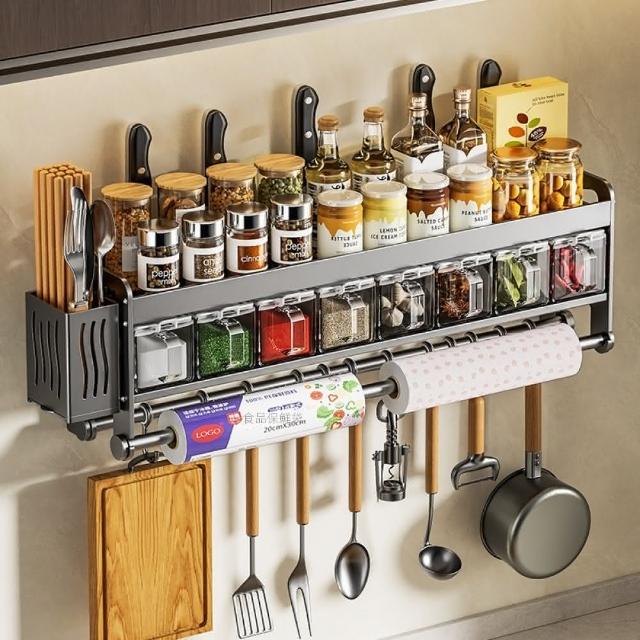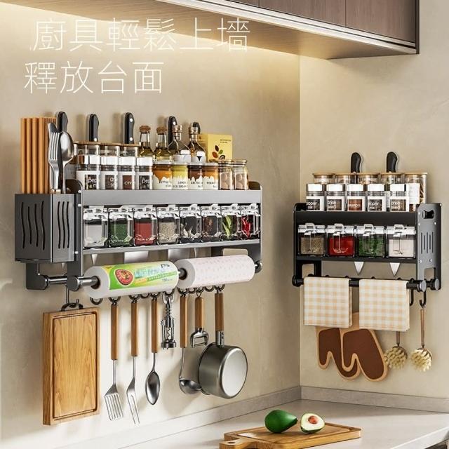 MatsuTa 松太廚房調料置物架 壁掛式刀架 免打孔多功能調味架 筷子刀架收納掛架子 40CM