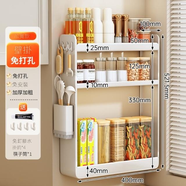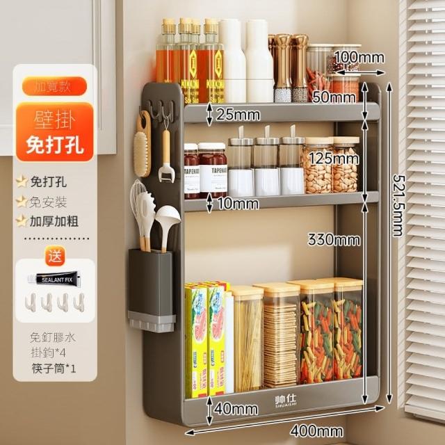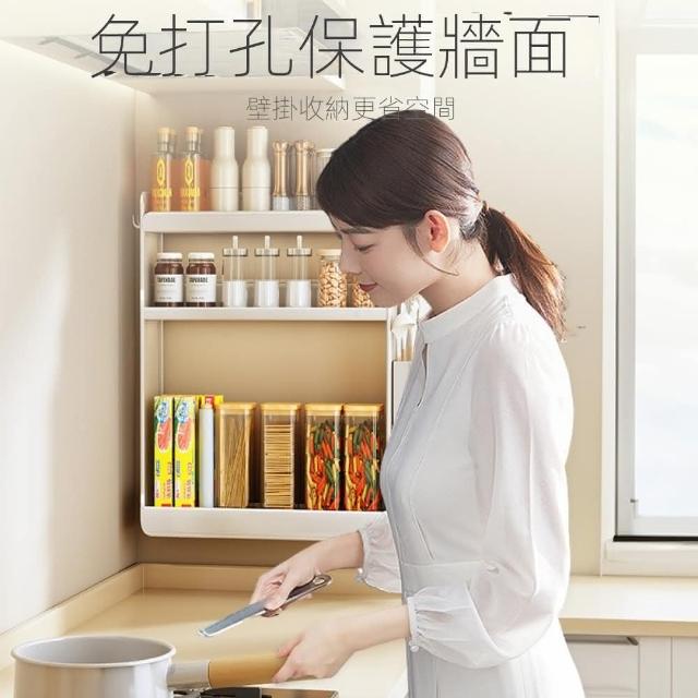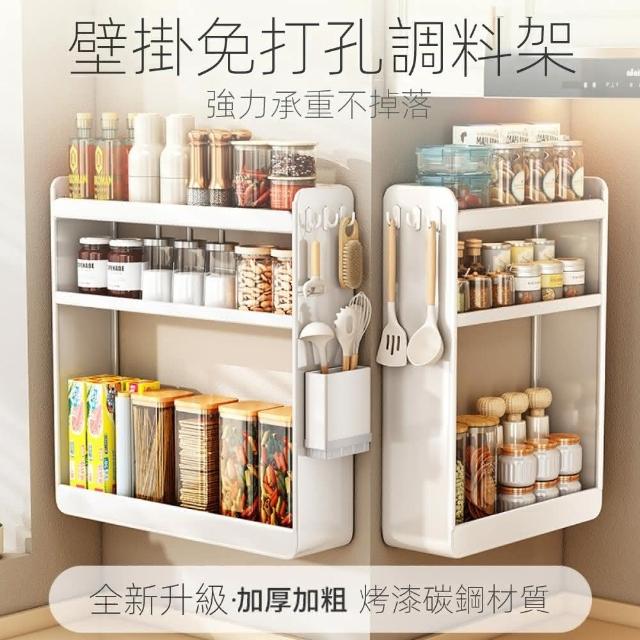 MatsuTa 松太免打孔免安裝 廚房壁掛式置物架 加厚加粗 多功能層架 調味架 收納瓶罐佐調味架