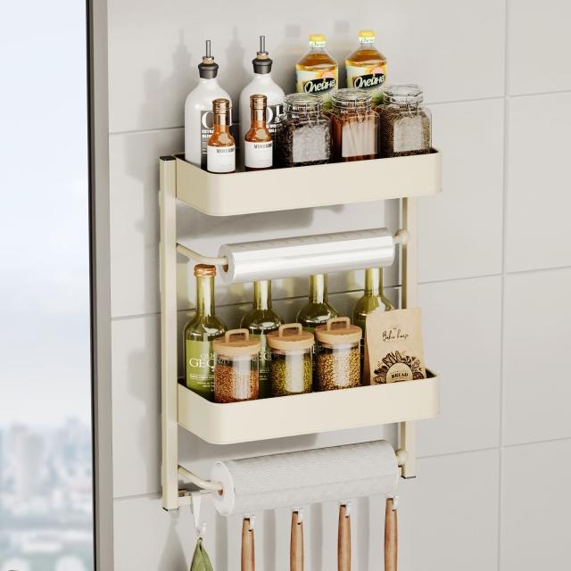 MatsuTa 松太新款冰箱置物架 調料置物架 調料架 佐料調味品多層油鹽醬醋側邊收納 廚房用品 多層保鮮膜 免打孔側壁掛架