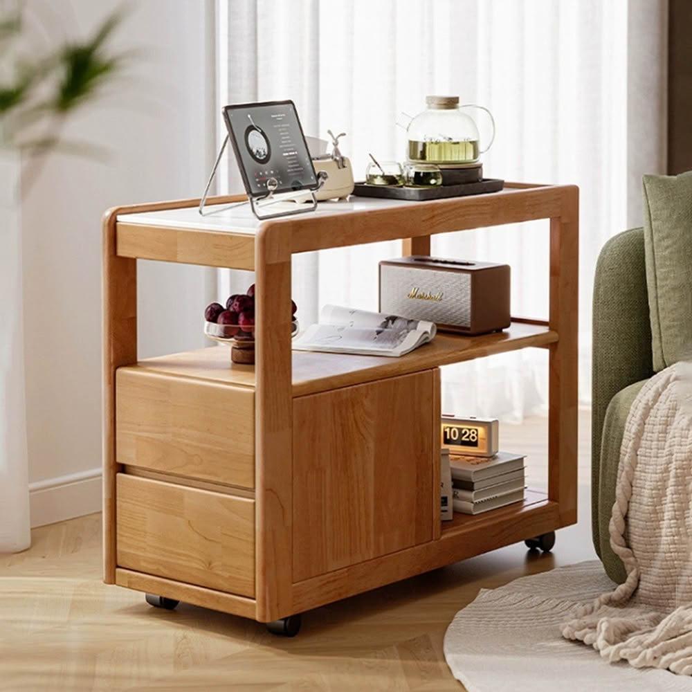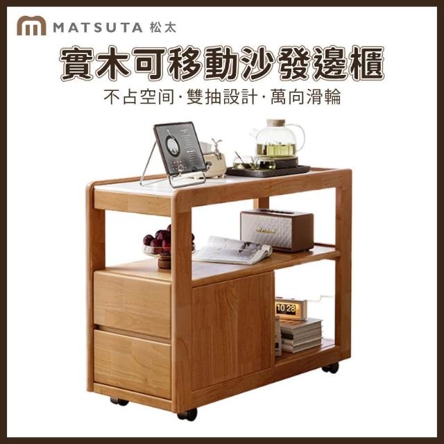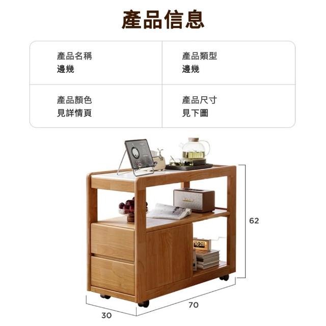 MatsuTa 松太北歐實木沙發邊櫃 整櫃發貨免安裝 邊几 邊桌 床頭櫃 岩板側邊幾 側邊櫃 客廳多功能茶几 收納櫃 附輪 小茶几