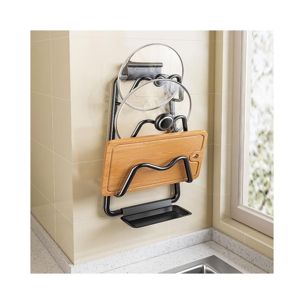 MatsuTa 松太家用砧板架收納神器 鍋蓋架子 免打孔壁掛式廚房置物架 砧板架 菜板架 鍋蓋架 鍋架 放切菜板 托架