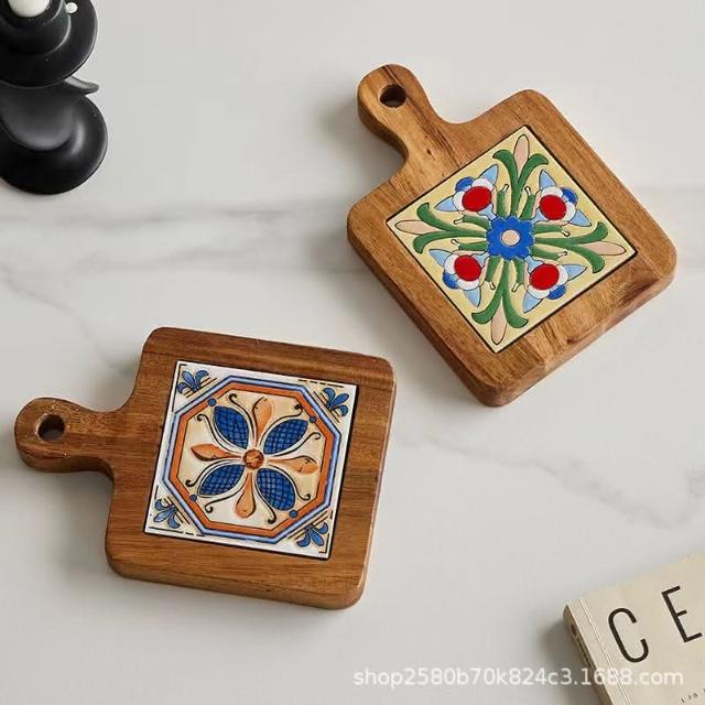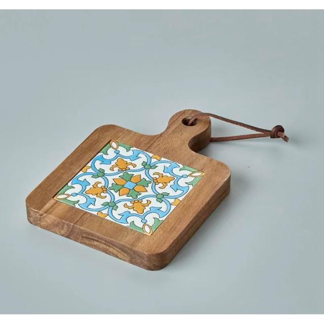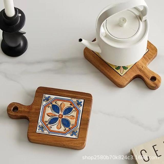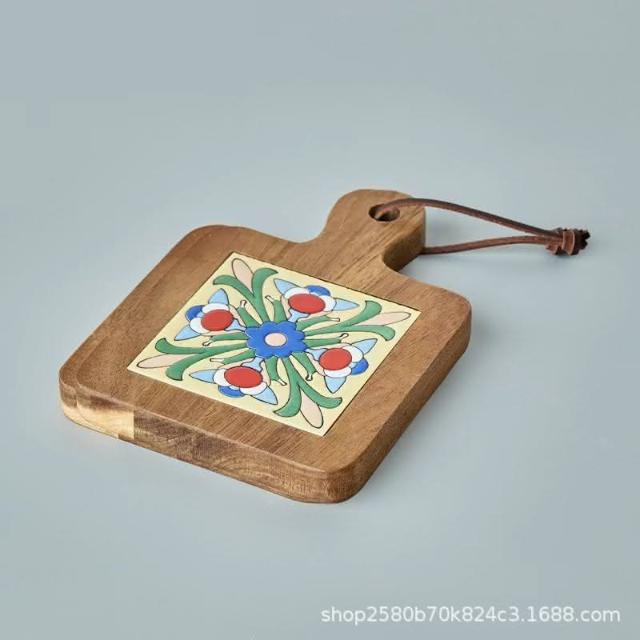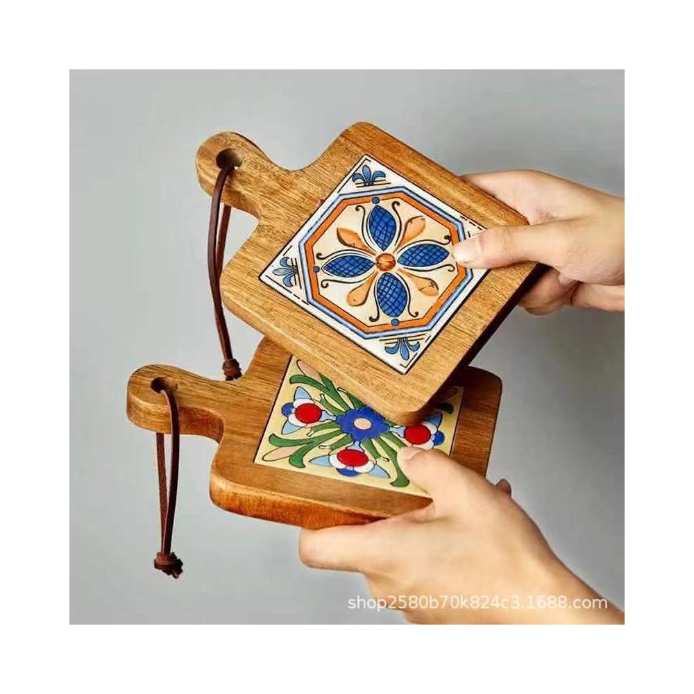 MatsuTa 松太防水防污隔熱餐墊 耐热杯垫 碗垫 木制花砖 隔热垫 复古实木餐垫 煲汤 煮茶 耐高温木垫 砂锅 原創設計