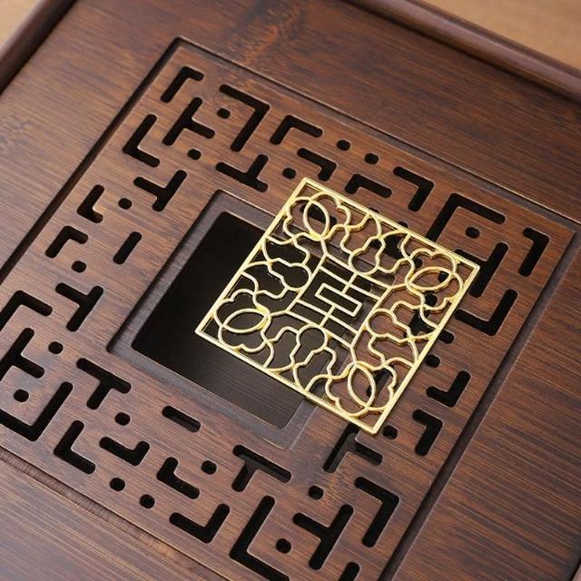MatsuTa 松太儲水式竹木茶台 乾泡盤 五福臨門 小茶盤 蓄水排水兩用 實木茶盤 乾泡台 泡茶盤 露營茶盤 便攜小茶盤 乾泡瀝水茶盤