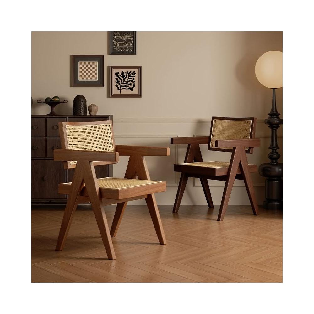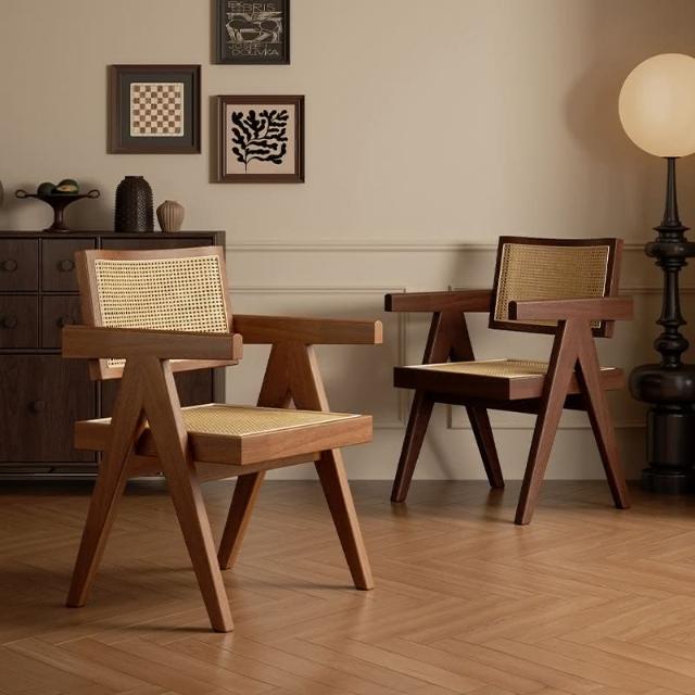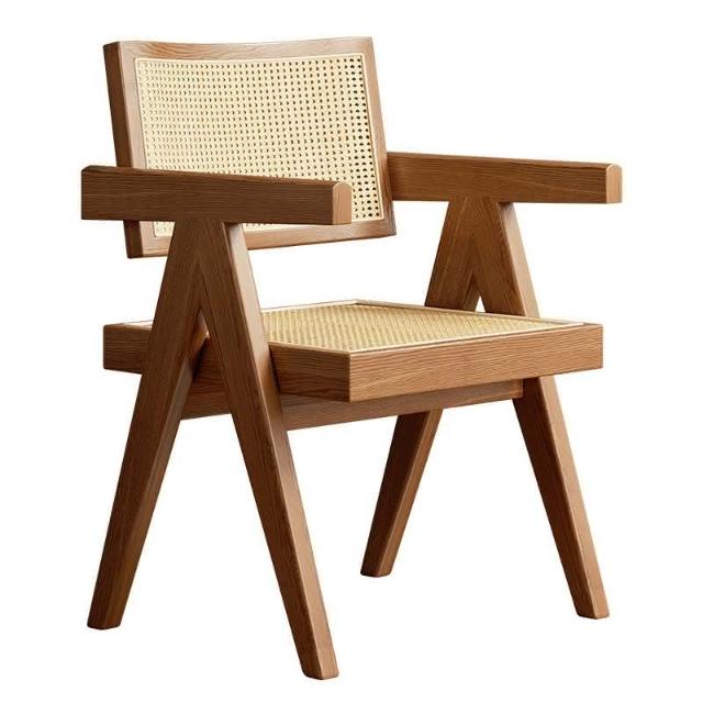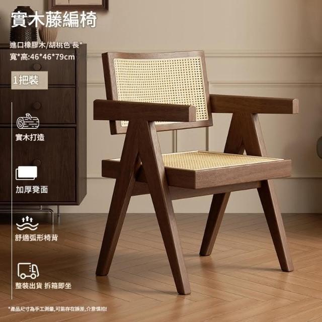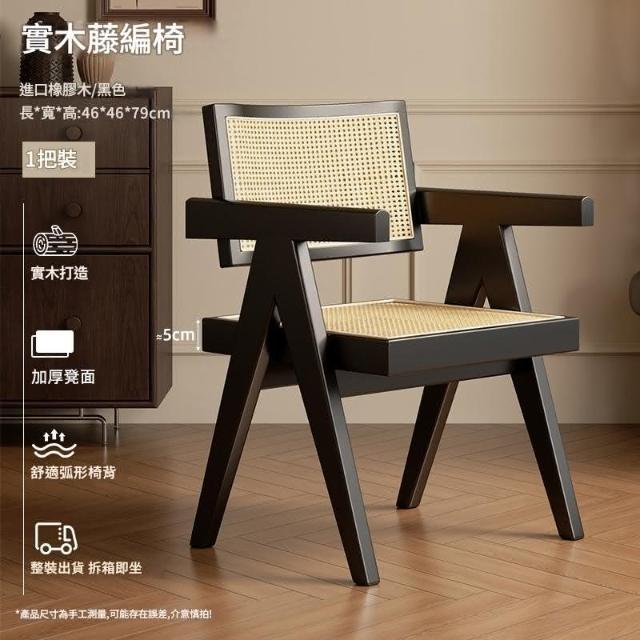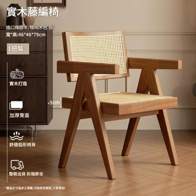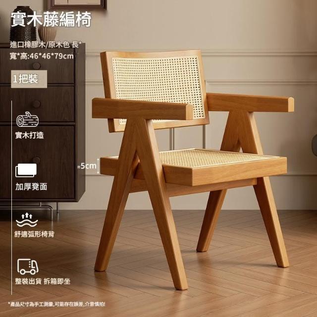 MatsuTa 松太家用藤編餐椅 FAS橡膠木靠背椅 免安裝家用椅 實木椅 洽談椅 餐桌椅 中古詔寂風 昌迪加爾椅子 靠背椅 實木茶椅